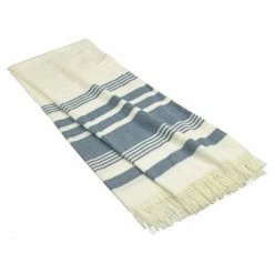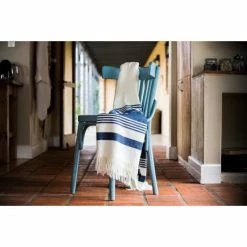 Haven & Earth Melody Streifen Plaid – 150×200 Cm – Blau/natur